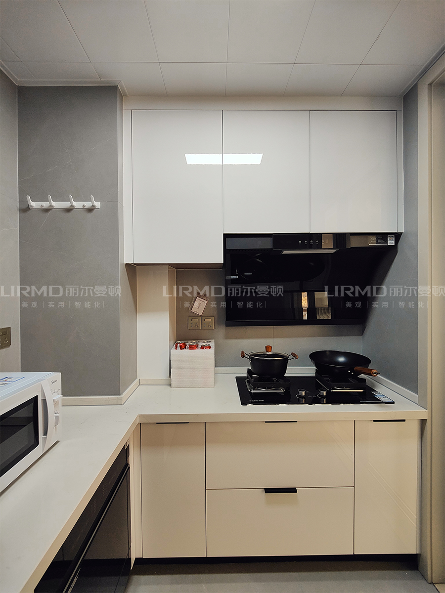 L型3米櫥柜選用進(jìn)口pet高光柜門,一應(yīng)俱全