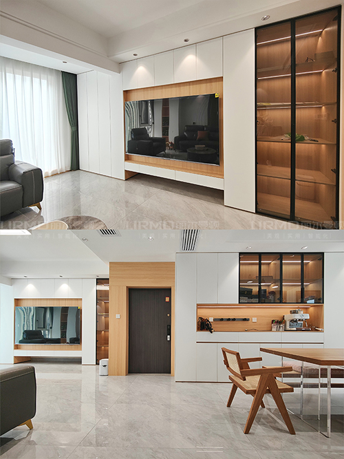 側邊玻璃門削弱柜體的厚重感,下側做鏤空設計,