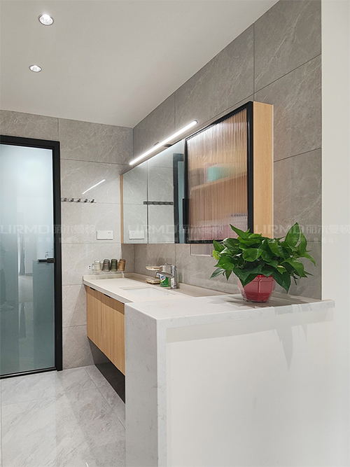 洗漱柜半墻設計真的顯大又好看,鏡柜還可收納,減少洗手臺的負擔