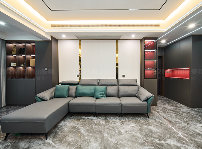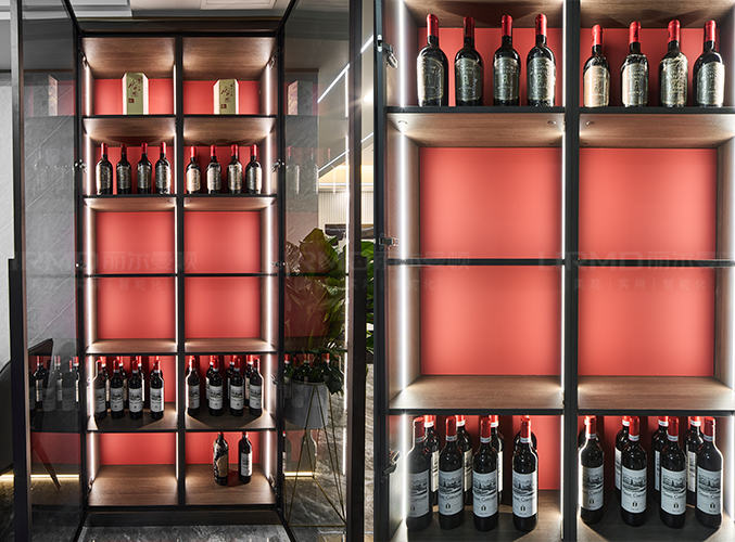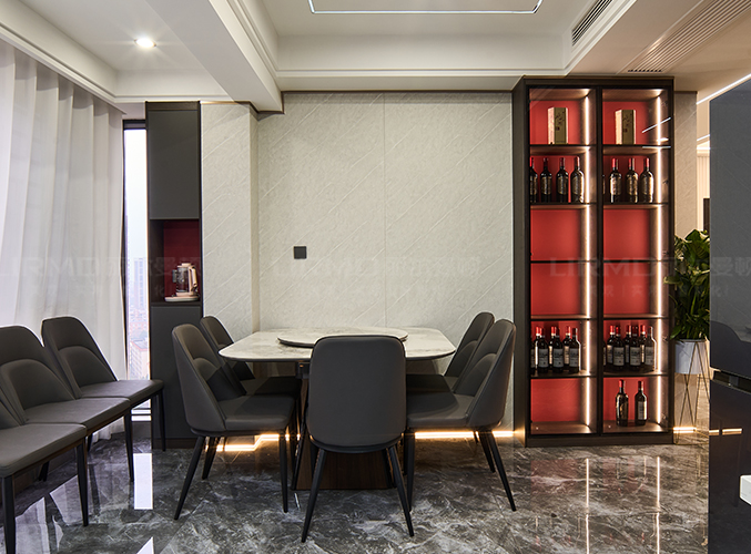整體的墻柜很好的利用空間,收納大大的提升,擺放上酒或飾品,彰顯出主人的高級(jí)品味。