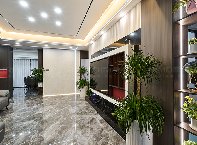 整屋通鋪瓷磚,盡顯大氣,客廳無(wú)主燈設(shè)計(jì),軌道燈+壁燈的組合,增強(qiáng)照明實(shí)用性的同時(shí)又增