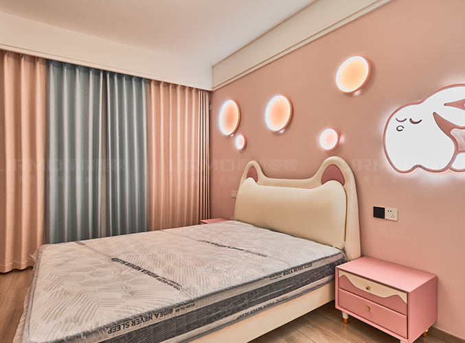 柜子一門到頂設計,實木柜體搭配PET膚感柜門,整體風格與軟裝更加統一。