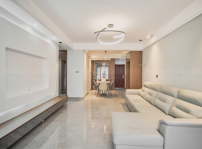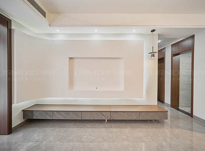 電視背景懸浮柜設(shè)計(jì),電視做內(nèi)嵌設(shè)計(jì),不占空間,吊燈設(shè)計(jì),增強(qiáng)照明實(shí)用性的同時(shí)