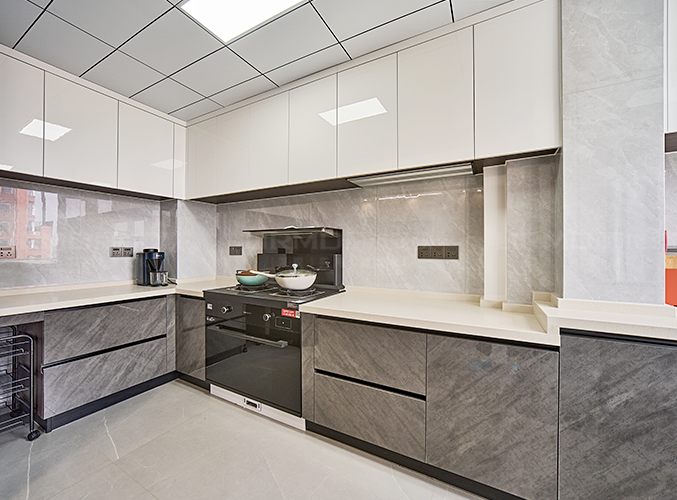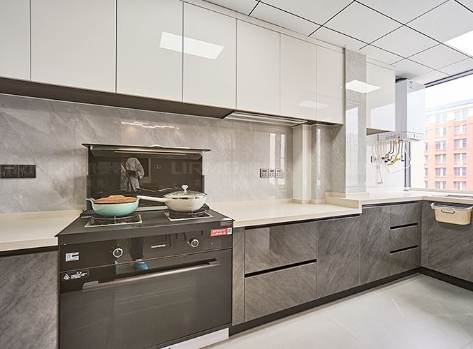 上下方都有收納柜,視覺層次更加豐富,搭配大理石臺面美觀又實用。