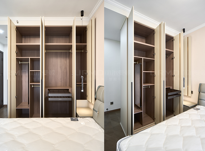 實木柜體搭配PET膚感柜門,質感超不錯,多組一門到頂柜子設計更是實現收納需求,