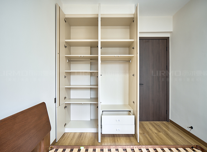 實木柜體搭配PET膚感柜門,質感超不錯,一門到頂柜子設計,多規格掛衣架+抽屜