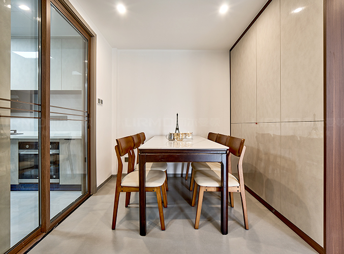 二樓樓梯口裝整墻餐邊柜,方便收納。