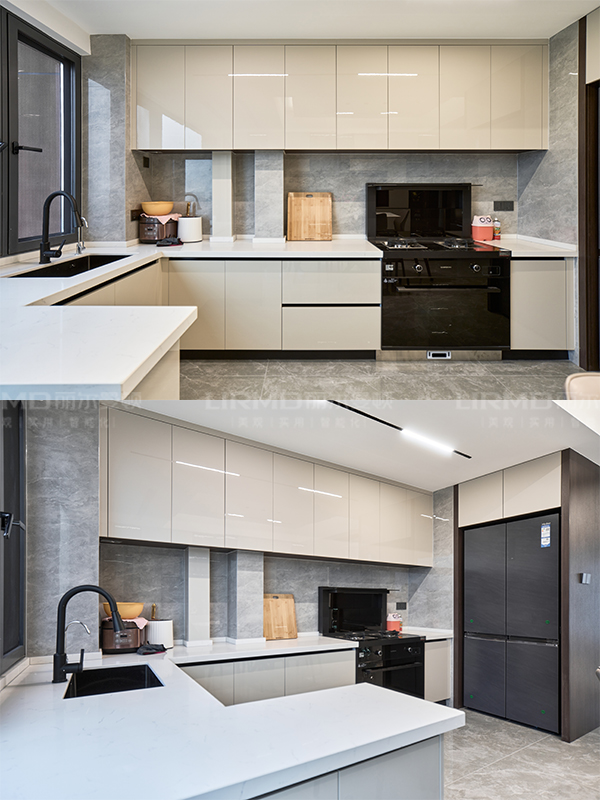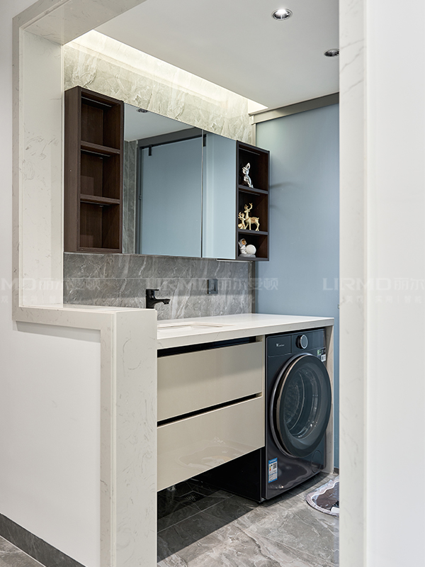 柜體\柜門型號(hào):柜體夢(mèng)幻灰\柜門琥珀白膚感 地磚品牌及型號(hào):馬可波羅CH12800啞光