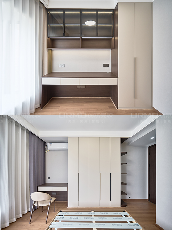 收納柜書桌一體設計,充分利用房間的各個空間