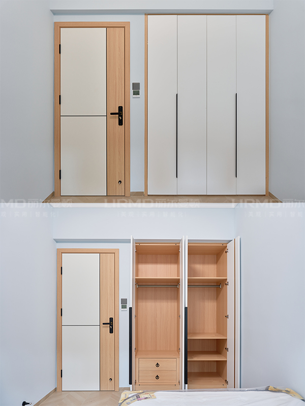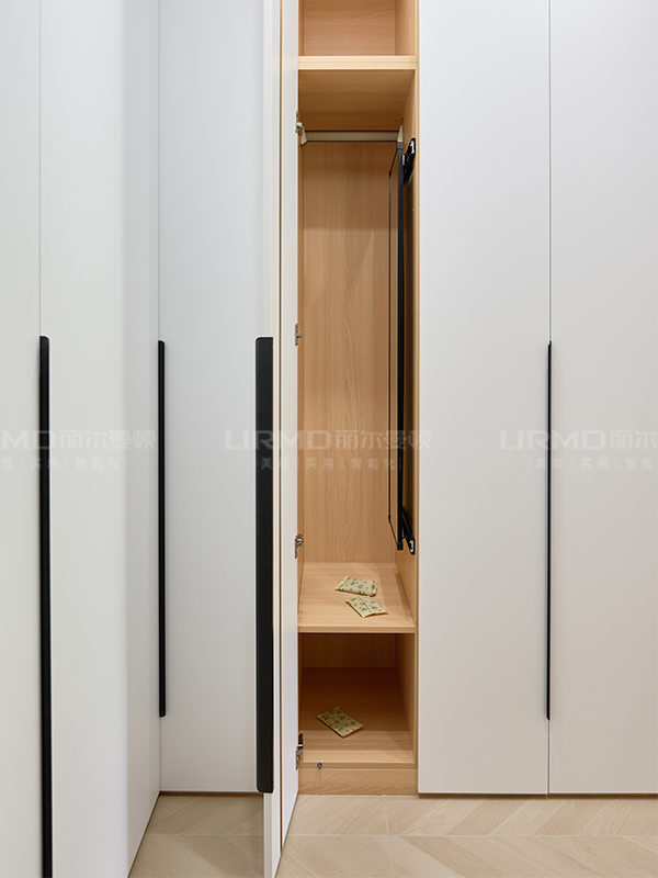 一門(mén)到頂式衣柜,簡(jiǎn)潔利落的線條展現(xiàn)了現(xiàn)代簡(jiǎn)約的精髓