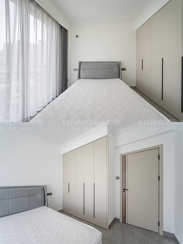次臥整版衣柜、兒童房整版衣柜、主臥雙“一”字型衣帽柜、書房書柜、陽臺洗衣柜、