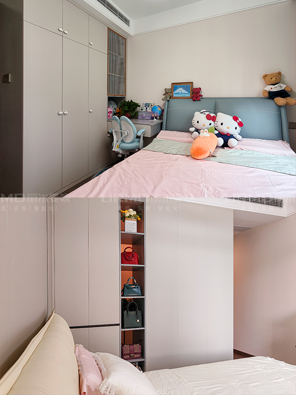 全房柜體打造較多,利用部分穿插設(shè)計、跳色設(shè)計,