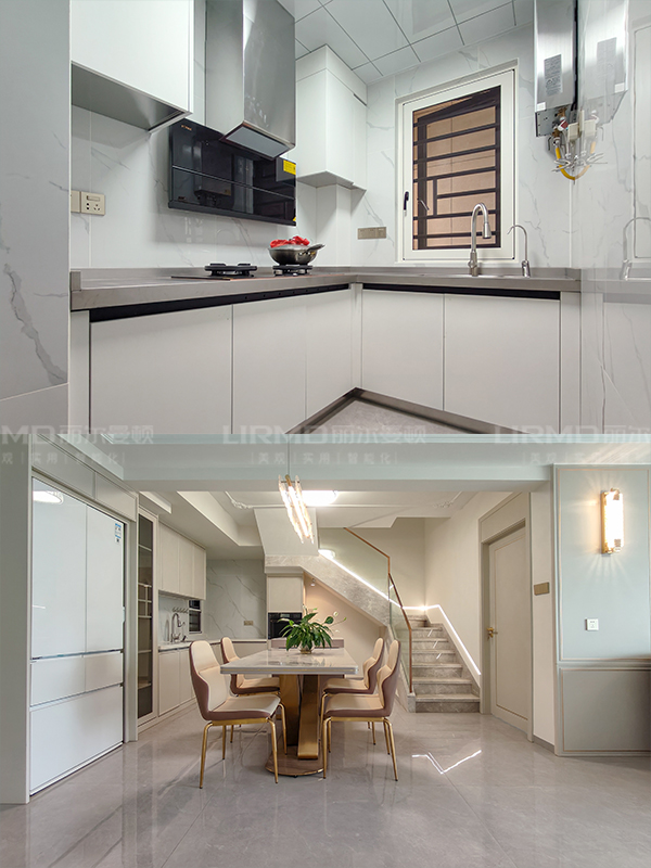 西廚是餐島一體設計,獨立邊柜設計了輕電器區以及水吧位置,
