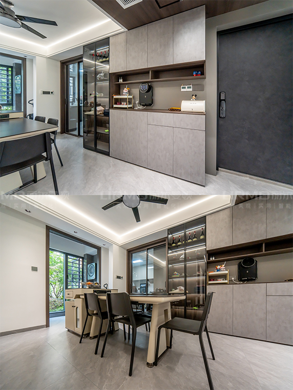 客廳采用了隱形門設(shè)計,延長電視背景+沙發(fā)背景視覺,是整體空間看起來更大