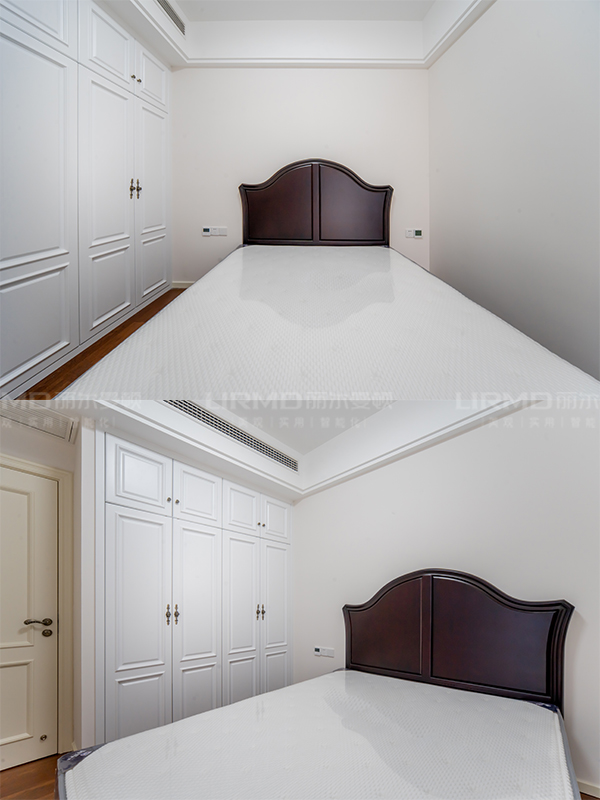 主臥帶L型獨立衣帽間,柜體柜門同色系配上銅色拉手點綴