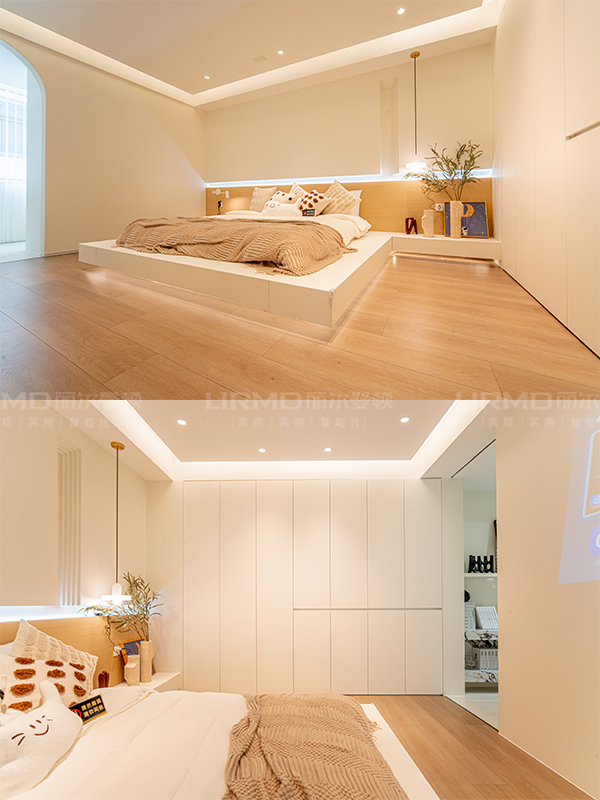 氛圍感十足,搭配投影幕布,幸福感滿滿,隱形推拉門(mén)+一體式衣帽間,真的絕了