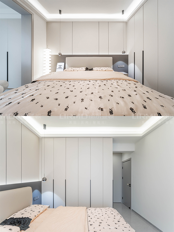 柜體板材為萬(wàn)象天冠18mm厚杉木芯板、Pet膚感柜門、奧地利進(jìn)口百隆五金