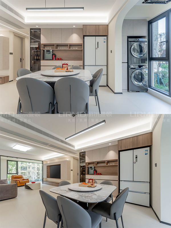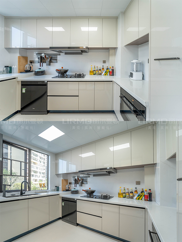 全屋高端定制:柜體板材18厚杉木實(shí)芯板,柜門(mén)有pet膚感、高光、超晶、五金使用原裝進(jìn)口奧地利百隆五金
