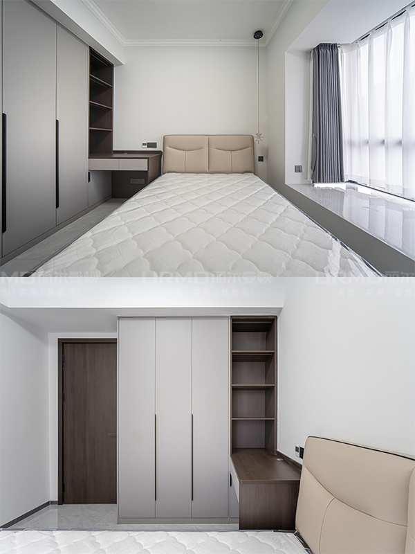 次臥衣柜+陽臺(tái)收納柜 兒童房衣柜+嵌入式書桌 浴室柜