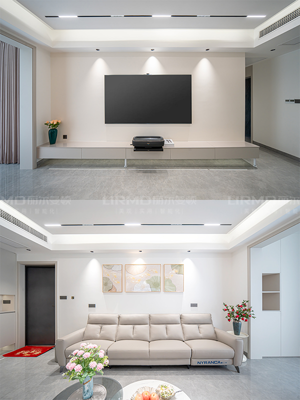 客廳做無主燈和雙眼皮吊頂設計,整體更顯開闊
