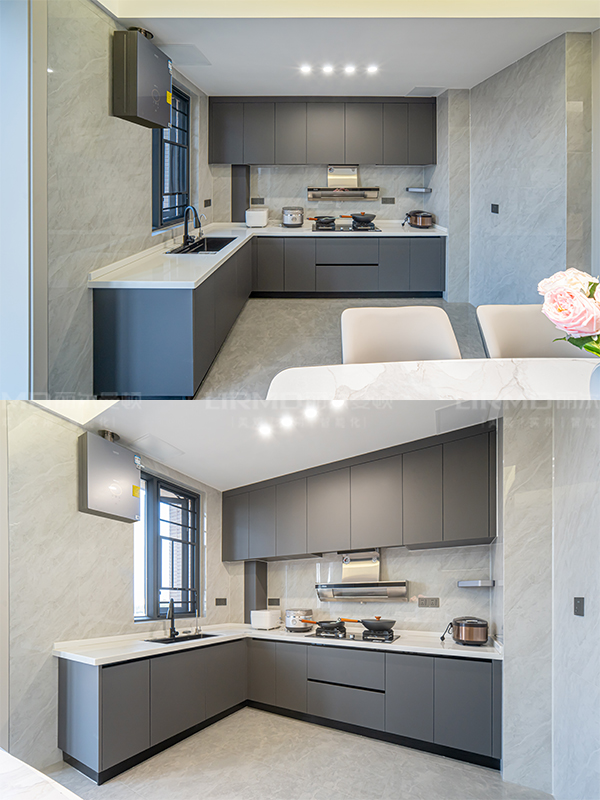 全屋采用象牙灰的柜體柜門,整體色調統一,溫暖又治愈