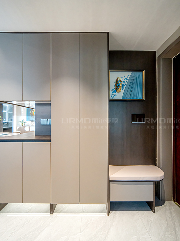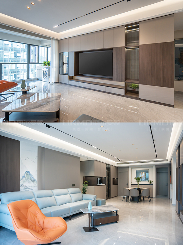全屋高端定制:柜體板材18厚杉木實芯板,柜門有pet膚感、高光、超晶、五金使用原裝進口奧地利百隆五金