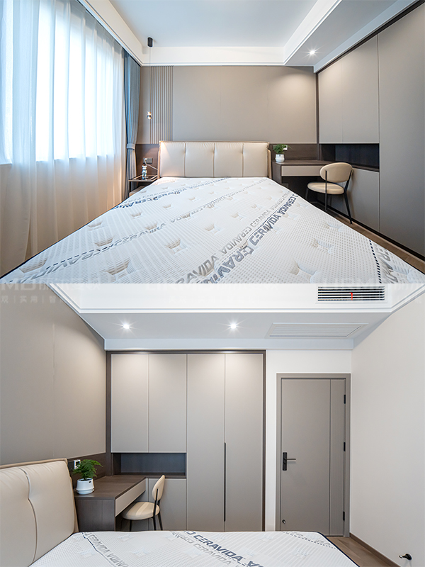 臥室柜充分的利用空間設計,做滿墻設計,滿足收納需求