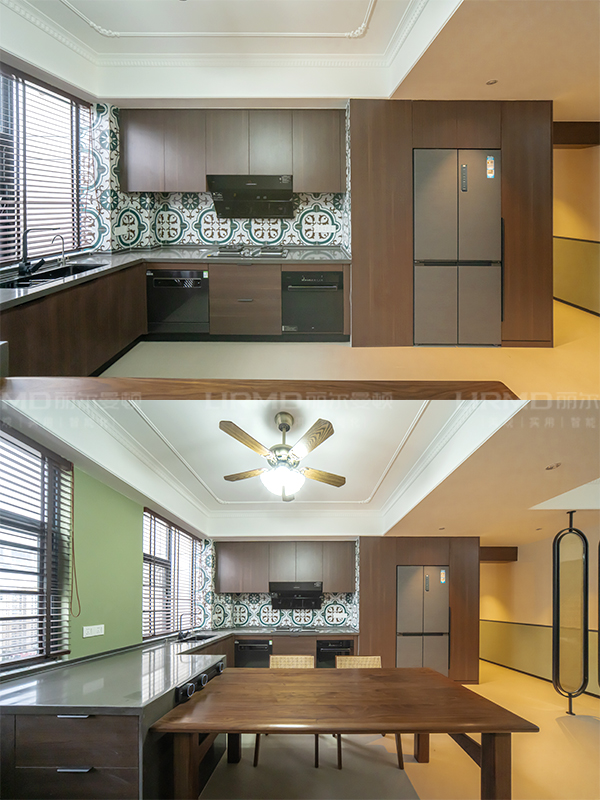 開放式廚房做餐廚一體化設計,空間利用提高,整體更統一