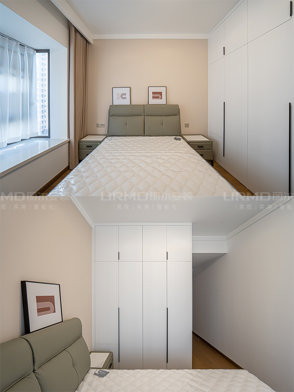 淺色與深色碰撞搭配,全房采用淺色系柜門,深色系家具搭配,增強空間的立體感