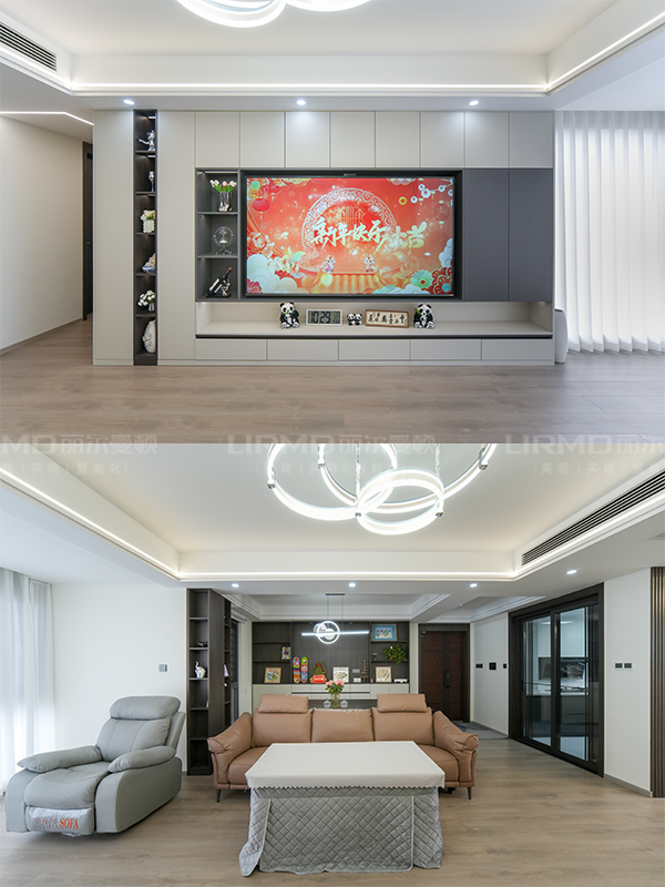滿墻電視柜+開放格:日常的雜物、囤貨統(tǒng)統(tǒng)都能收納進(jìn)去,而且顏值也是非常的簡潔大氣