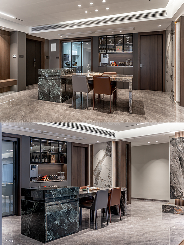 客廳餐廳茶吧一體設(shè)計(jì),提升空間通透性與開放度,讓空間更具和諧美感