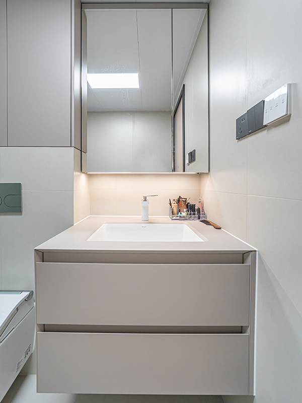 通鋪了1500×750的淺色瓷磚,使得空間得到了延伸,家里看起來(lái)顯大又通透