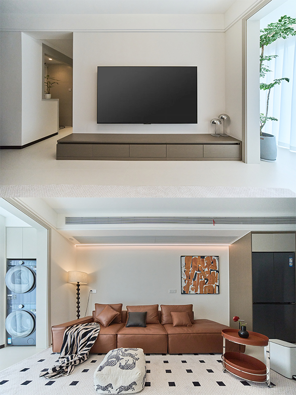 所有區域都打造墻柜一體化,讓空間更顯整體性的同時,收納能力也超強