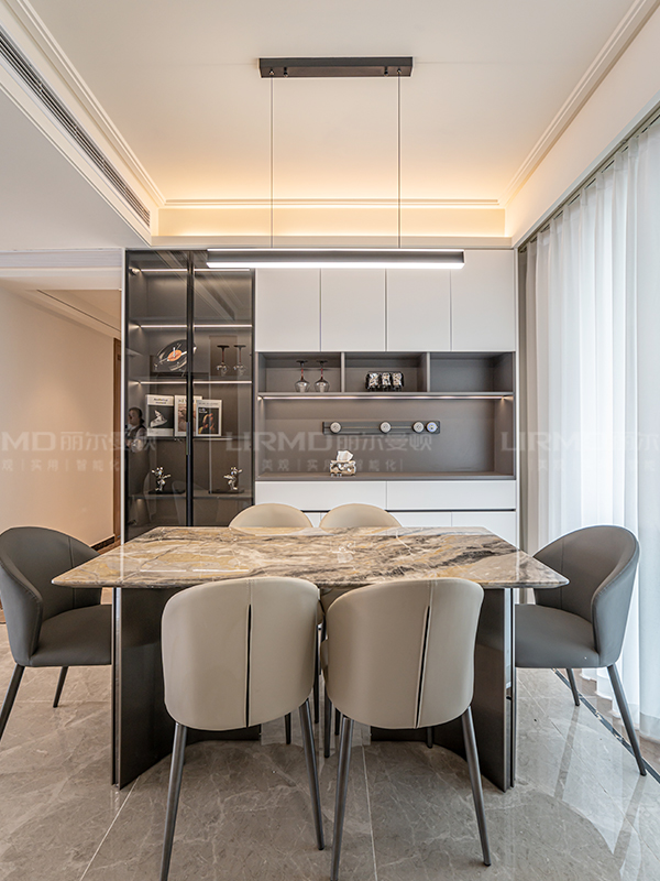 黑白灰的簡單搭配,拋棄多余的裝飾設計,營造品質與細節拉滿的質感,打造出氣質卓然的空間氛圍