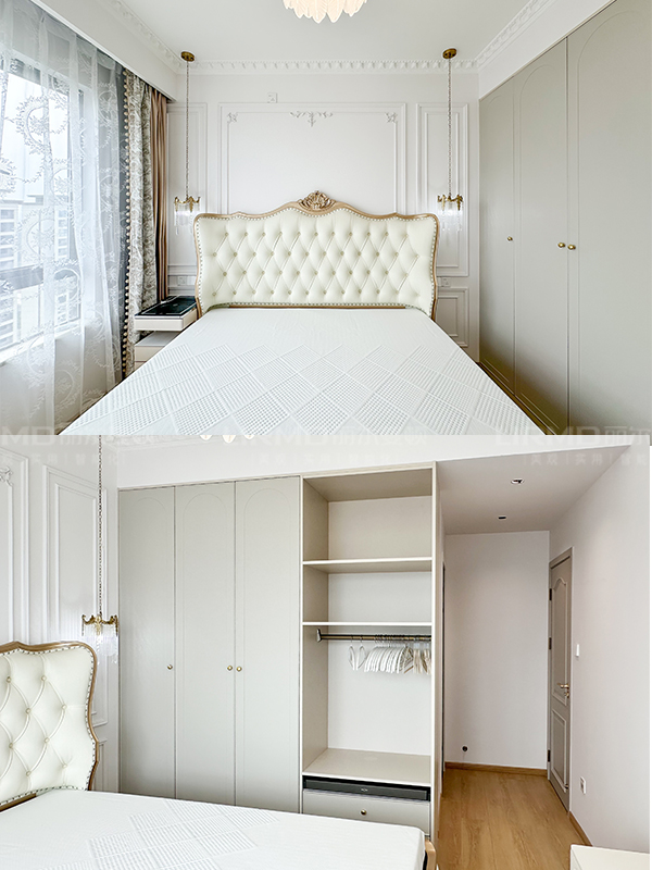 長沙靠譜裝修公司,長沙靠譜全屋定制,臥室衣柜加梳妝臺,法式奶油風,