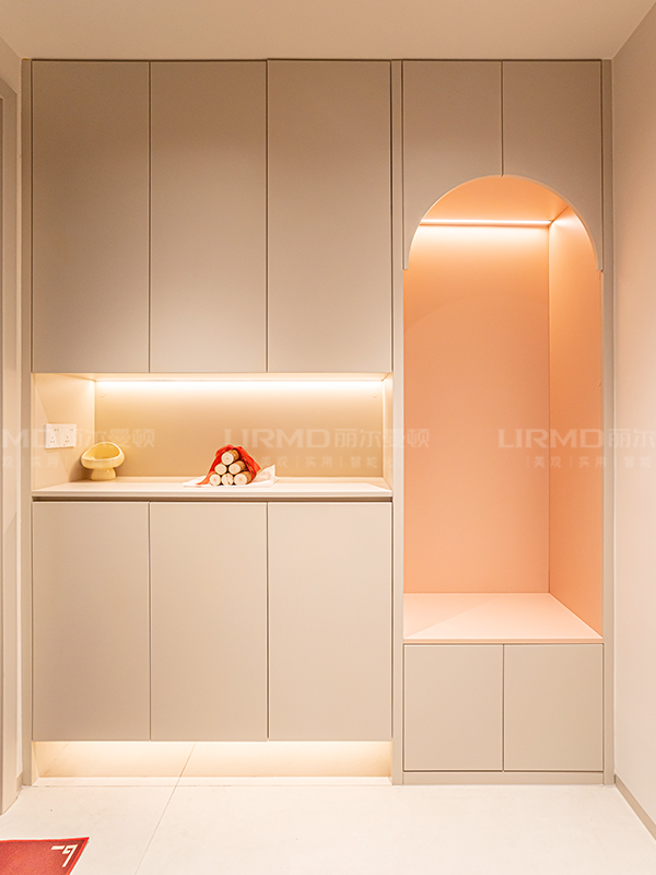 定制:柜體18厚杉木芯板、歐松板膚感柜門,進口百隆五金,激光封邊