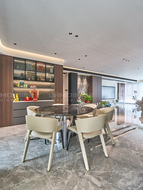 沙發背景和電視背景均采用巖板設計,點綴空間,簡單不失細節,低調不失奢華