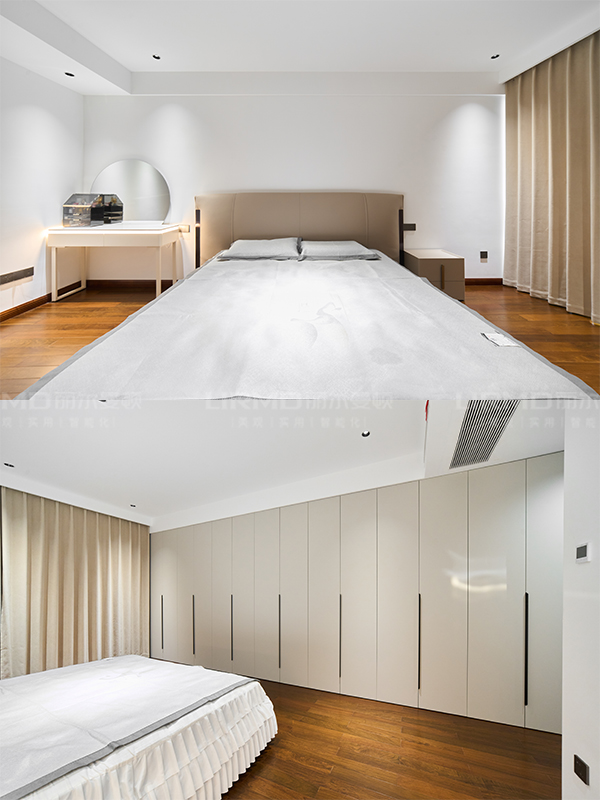 陽臺通鋪客廳空間非常大,全房做了無主燈吊頂,燈光柔和又充滿氛圍感