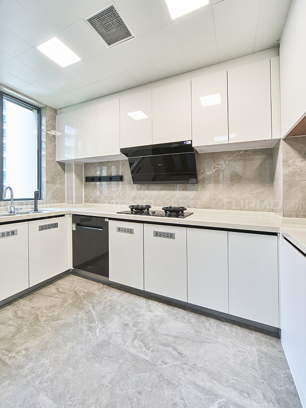 柜子顏色采用傳統(tǒng)純白色系搭配木紋讓整體空間更加溫暖