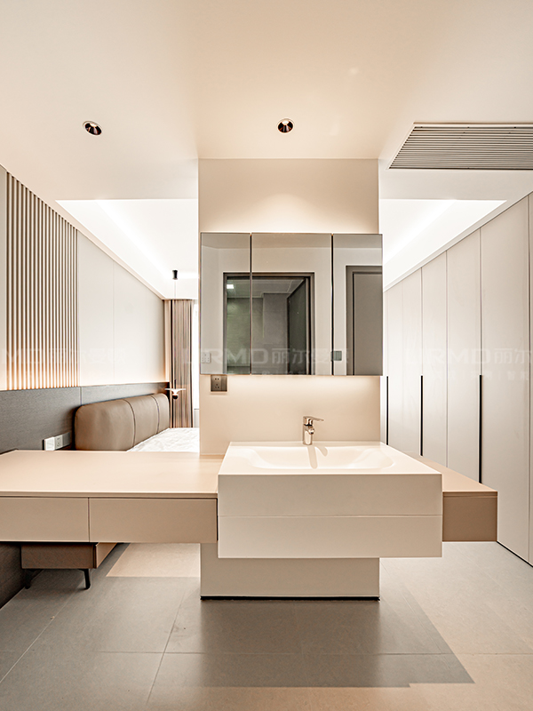 長沙靠譜裝修公司,長沙靠譜全屋定制,臥室衣柜加梳妝臺,現代風,