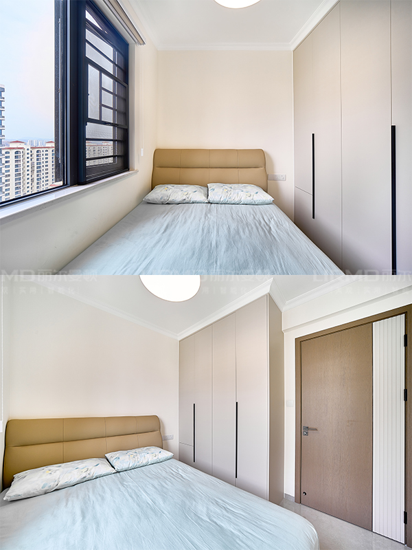 臥室衣柜做一門到頂,簡約拉手,家里再多衣物都能輕松收納