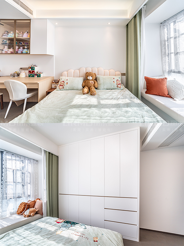 超多個性化衣柜,床頭柜+衣柜一體,原木+珍珠白的穿插搭配,高級感爆棚