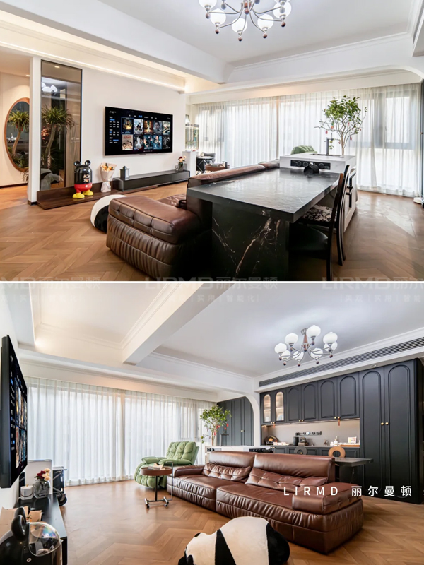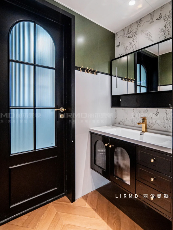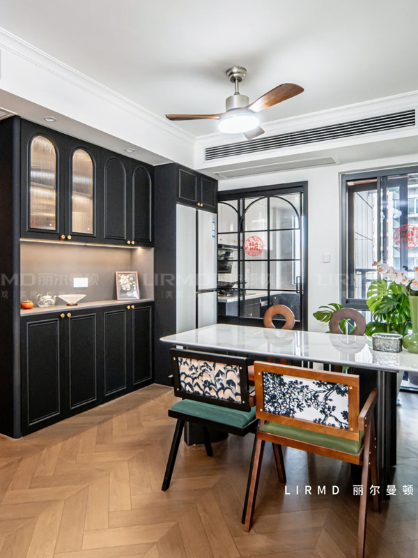 石膏線雕花+黑色踢腳線,細節呼應法式復古的秩序感