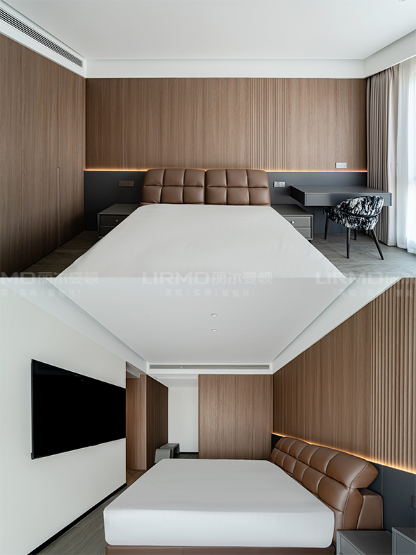 主題以輕奢暖色調為主,輕奢巖板結合墻板,打造現代舒適不過時的家