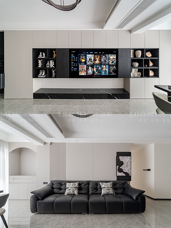 嵌入式電視背景墻:收納+展示+觀影三合一,整面墻功能拉滿還不顯雜亂