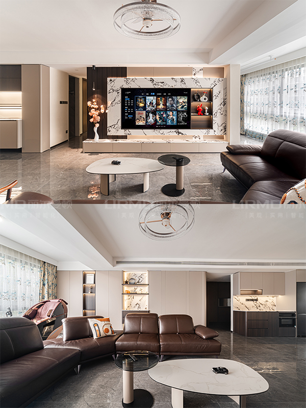 左邊吊燈端景氛圍感直接拉滿,追劇時連背景都像在看雜志大片